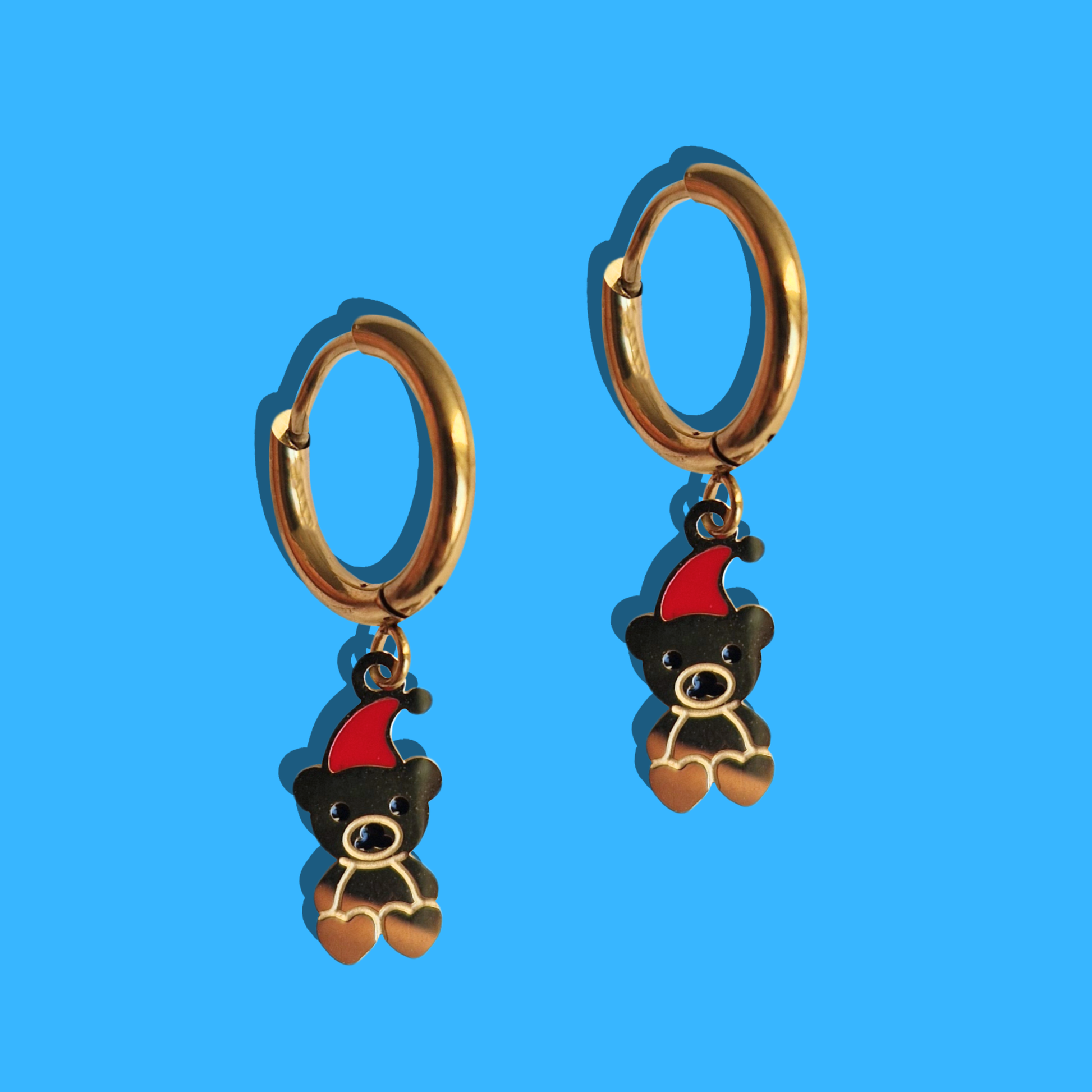 Ζήστε τη γιορτινή μαγεία με τα Χριστουγεννιάτικα Ατσάλινα Χρυσά Σκουλαρίκια Αρκουδάκι με Σμάλτο, με το γλυκό αρκουδάκι σε κόκκινο σκουφάκι Αγίου Βασίλη. Το υποαλλεργικό ατσάλι που δεν μαυρίζει συνδυάζει στυλ και άνεση. Ιδανικό δώρο Χριστουγέννων που γεμίζει καρδιές χαρά και ζεστασιά.