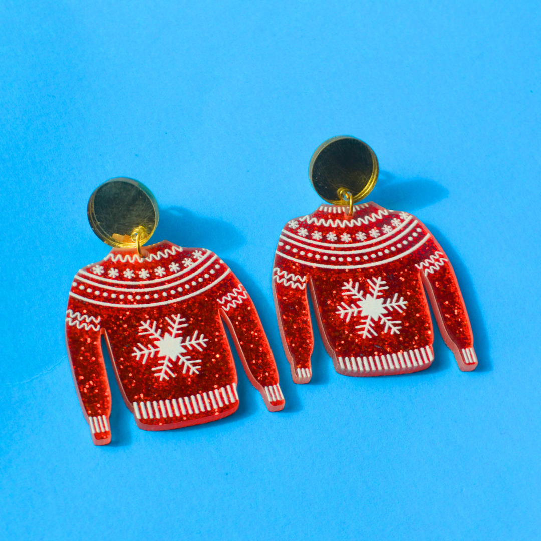 Χριστουγεννιάτικα Σκουλαρίκια Καρφωτά Κόκκινο Πουλόβερ Red Sweater