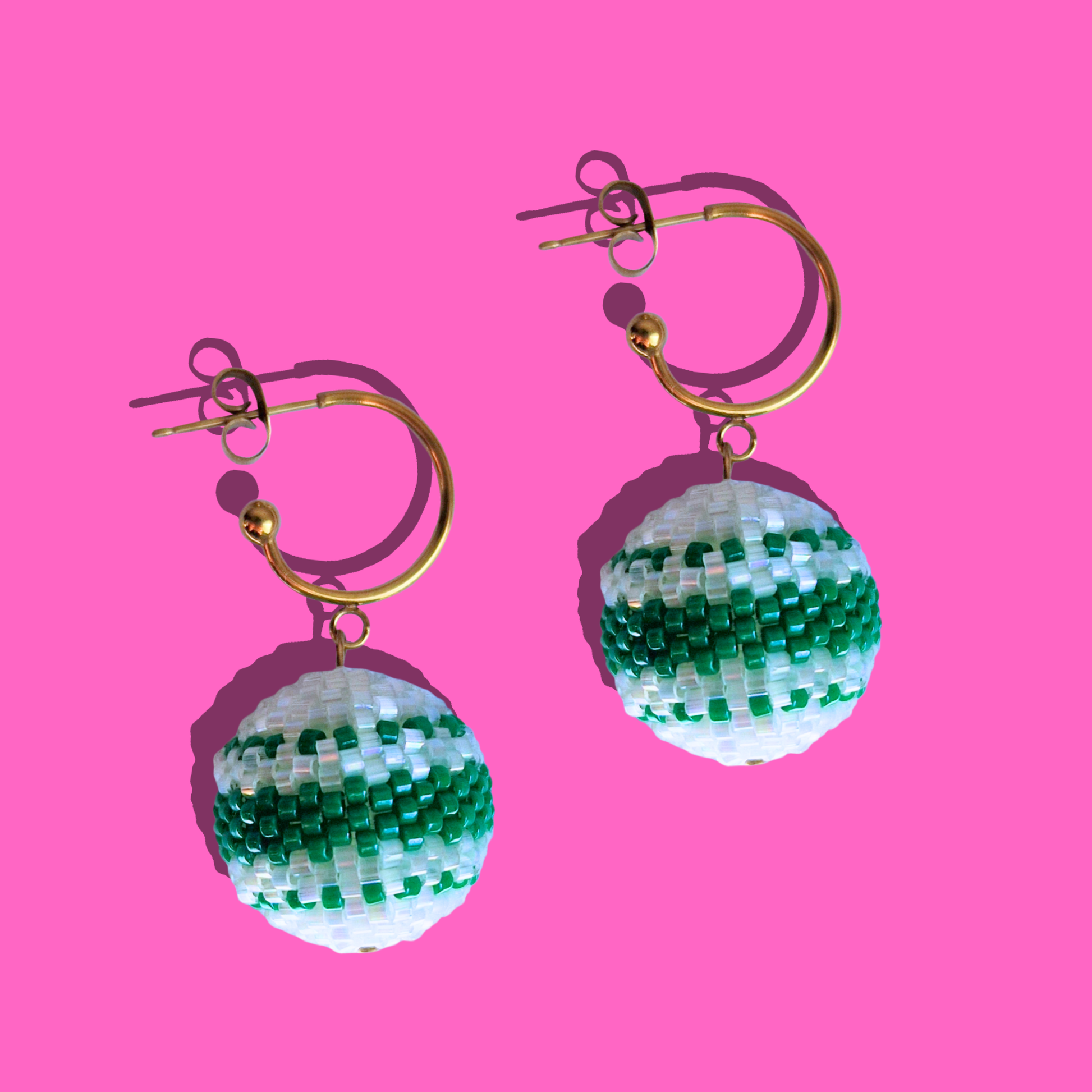 Ανακαλύψτε τα μοναδικά χειροποίητα ατσάλινα χρυσά σκουλαρίκια-μπάλες με χάντρες Miyuki σε εορταστικό πράσινο-περλέ. Το υποαλλεργικό ανοξείδωτο ατσάλι εγγυάται ότι δεν μαυρίζουν, προσφέροντας διαρκή πολυτέλεια. Φορέστε αυτό το ξεχωριστό γυναικείο αξεσουάρ και νιώστε τη μαγεία των Χριστουγέννων σε κάθε εμφάνιση. Είναι το τέλειο δώρο για να εκφράσετε την αγάπη σας! Αγοράστε τώρα για αξέχαστες γιορτές.