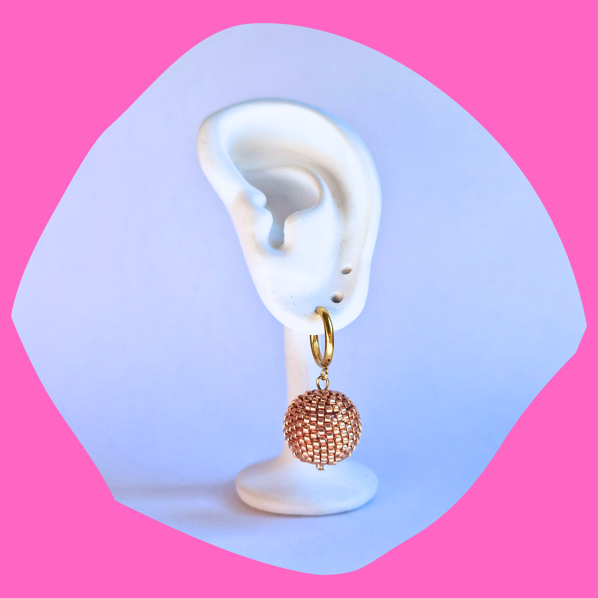 Χριστουγεννιάτικα Χειροποίητα Ατσάλινα Χρυσά Σκουλαρίκια Μπάλα από Χάντρες Miyuki Χρυσή