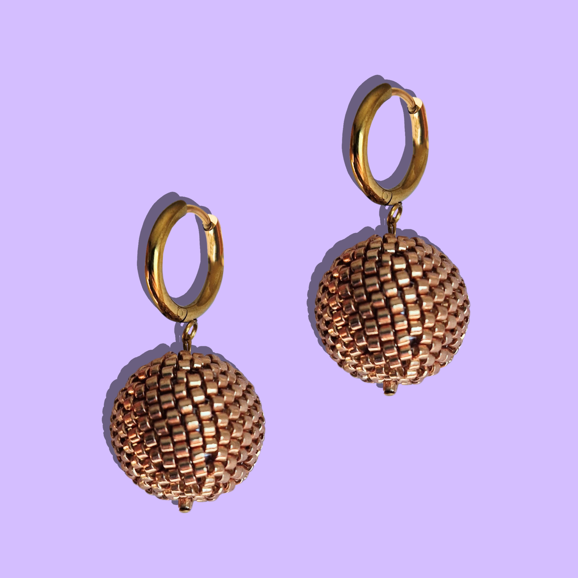 Αποκτήστε τα χειροποίητα ατσάλινα χρυσά σκουλαρίκια-μπάλες με χάντρες Miyuki σε εκθαμβωτική χρυσή απόχρωση και νιώστε την πολυτέλεια των Χριστουγέννων. Το υποαλλεργικό ανοξείδωτο ατσάλι εξασφαλίζει ότι το κόσμημα δεν μαυρίζει και διατηρεί τη λάμψη του. Ιδανικό γυναικείο αξεσουάρ για τις γιορτές, αυτά τα σκουλαρίκια αποτελούν το τέλειο δώρο για να εκφράσετε την αγάπη σας. Φορέστε τα και τραβήξτε όλα τα βλέμματα!