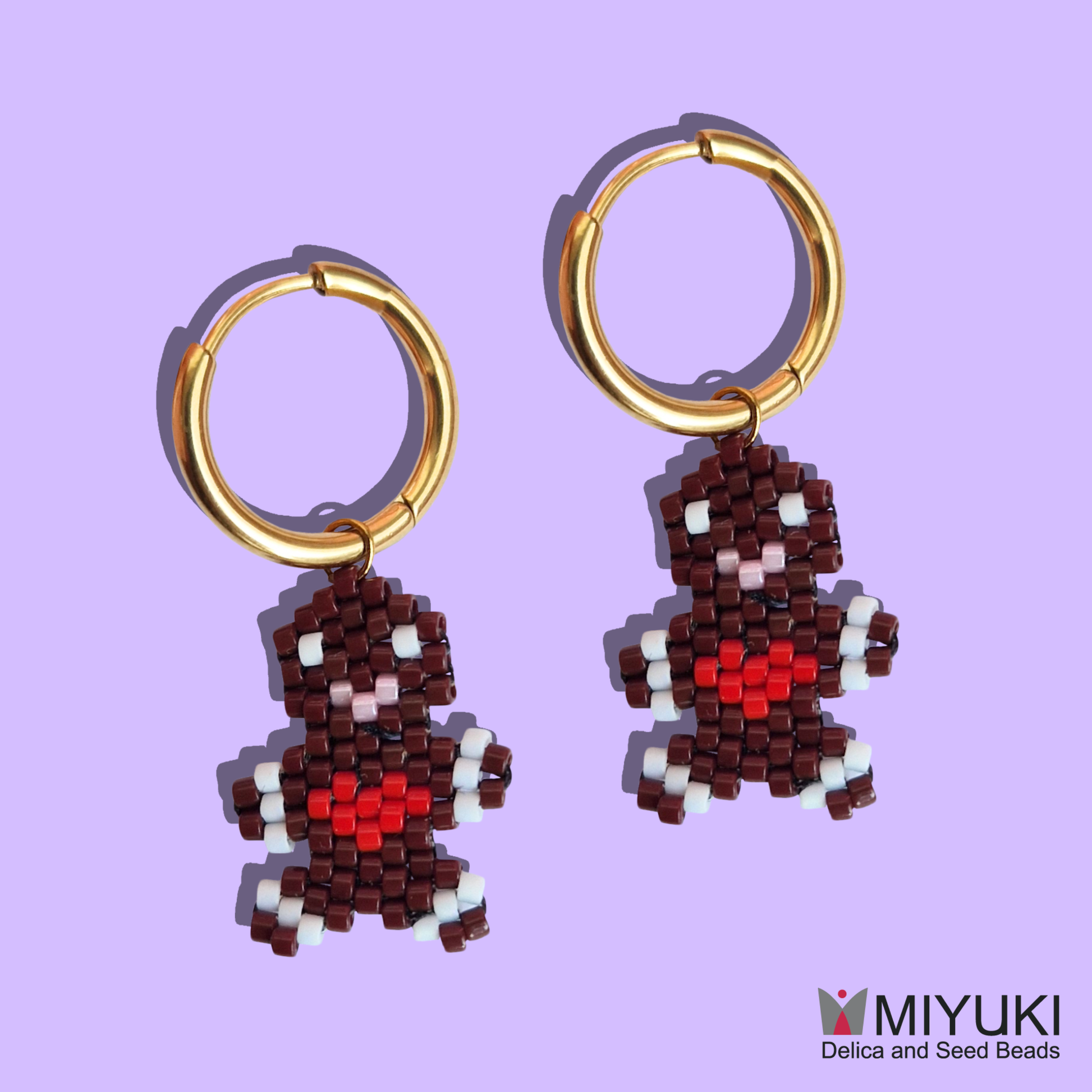 Χριστουγεννιάτικα Χειροποίητα Ατσάλινα Χρυσά Σκουλαρίκια Μπισκοτάκι από Χάντρες Miyuki Gingerbread Man