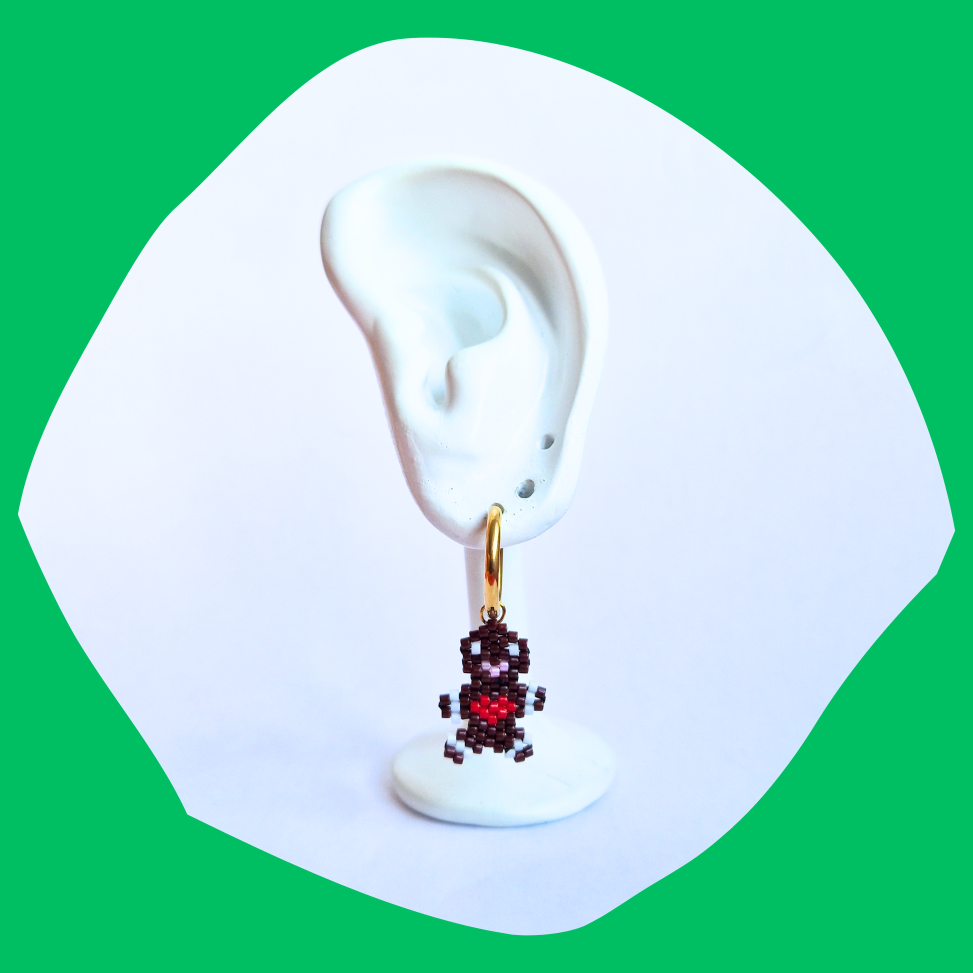 Χαριτωμένα Χριστουγεννιάτικα χειροποίητα ατσάλινα σκουλαρίκια μπισκοτάκι Gingerbread Man από χάντρες Miyuki, με καφέ ανθρωπάκι και κόκκινη καρδούλα που αποπνέει ζεστασιά. Διαθέσιμα σε υποαλλεργική χρυσή ή ασημένια βάση, γεμίζουν τη νέα χρονιά χρώμα και χαρά. Ένα γλυκό, γιορτινό αξεσουάρ που γίνεται τέλειο δώρο.
