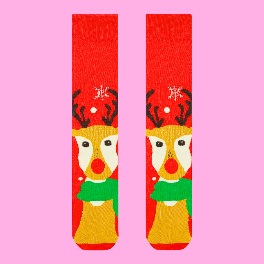 Οι Χριστουγεννιάτικες Κόκκινες Κάλτσες με Σχέδια Τάρανδος Cute Reindeer φέρνουν χαρούμενη γιορτινή διάθεση και ζεστασιά στα πόδια σας. Άνετες και ποιοτικές, ιδανικές για χριστουγεννιάτικα outfits ή δώρα. Φόρεσέ τες και ζήσε τη μαγεία των Χριστουγέννων με παιχνιδιάρικο, χαμογελαστό και στιλάτο τρόπο!