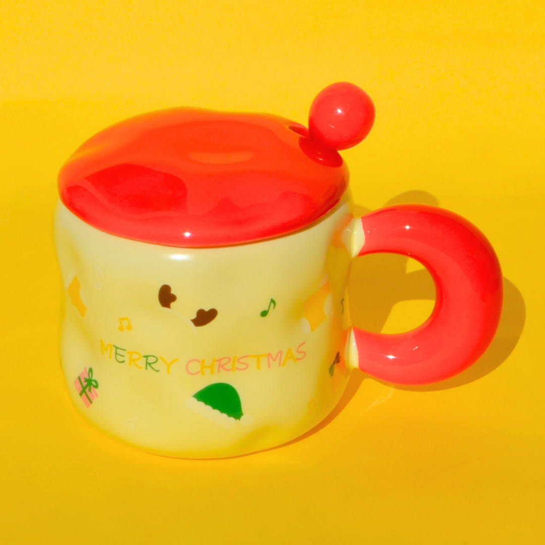 Χριστουγεννιάτικη Πορσελάνινη Λευκή Κούπα με Κόκκινη Καπάκι και Κουτάλι