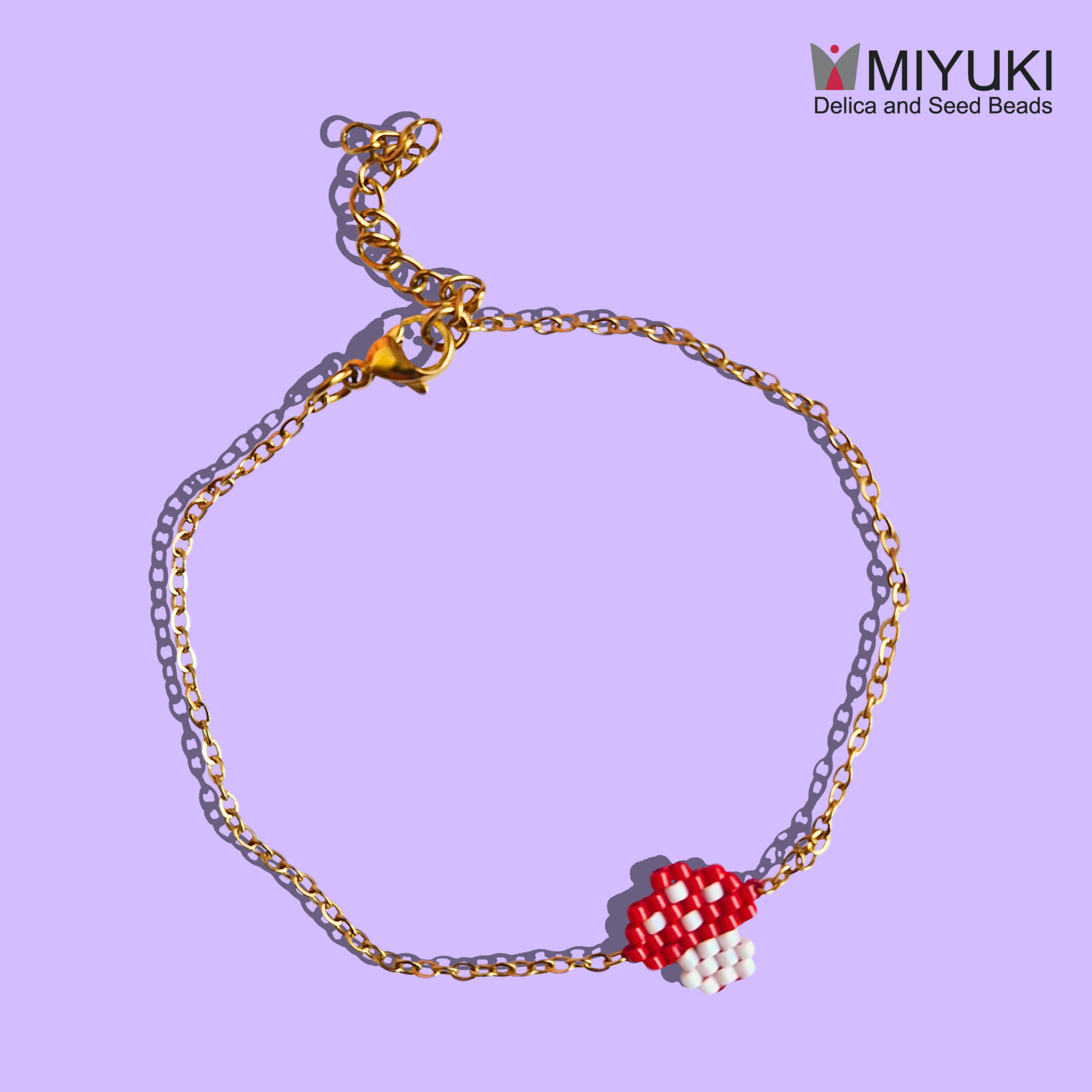 Χριστουγεννιάτικο Χειροποίητο Βραχιόλι Χεριού Μανιταράκι από Χάντρες Miyuki σε Ατσάλινη Χρυσή Αλυσίδα