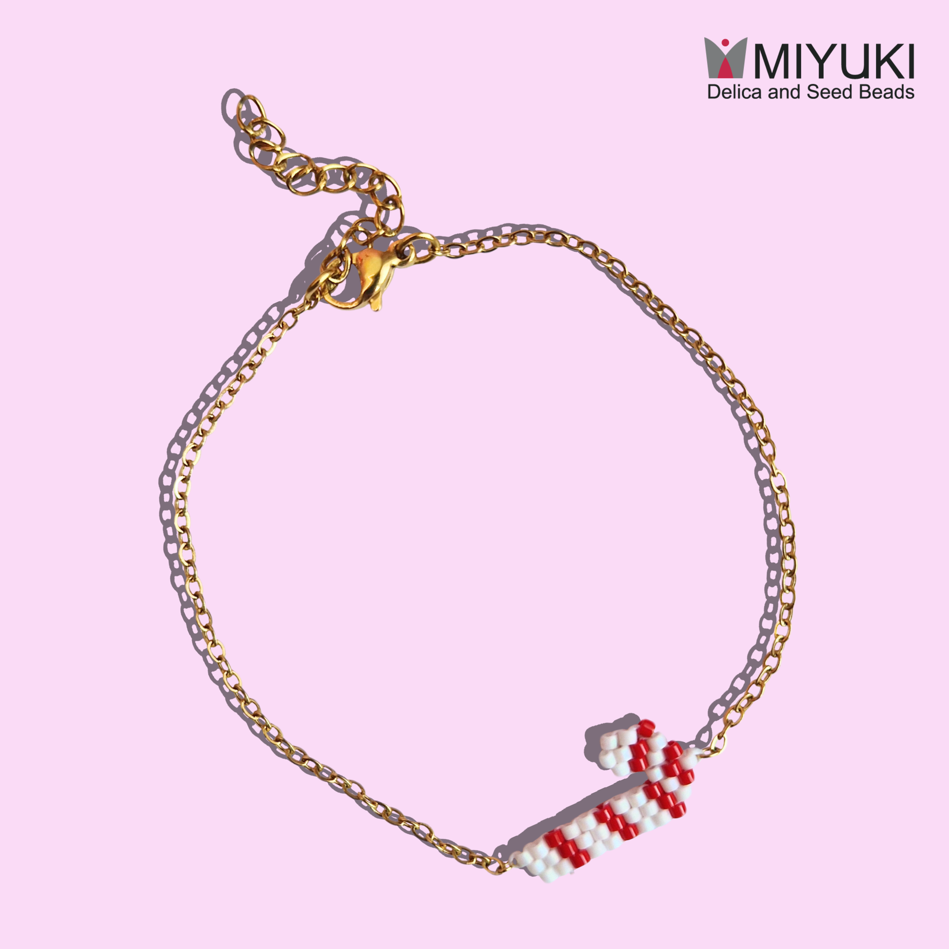 Χριστουγεννιάτικο Χειροποίητο Βραχιόλι Χεριού Ζαχαρωτό από Χάντρες Miyuki σε Ατσάλινη Χρυσή Αλυσίδα Christmas Candy