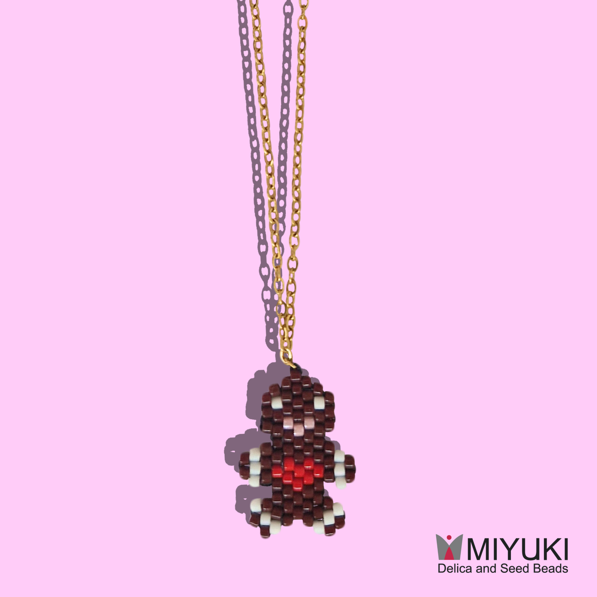 Χριστουγεννιάτικο Χειροποίητο Κολιέ Μπισκοτάκι από Χάντρες Miyuki σε Ατσάλινη Χρυσή Αλυσίδα Gingerbread Man